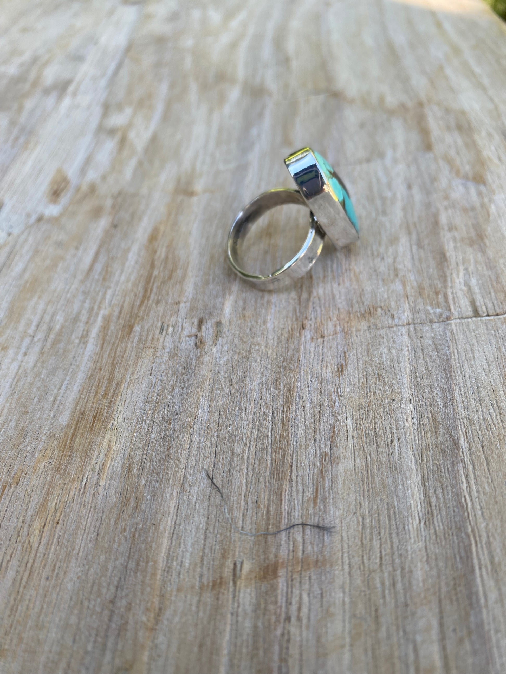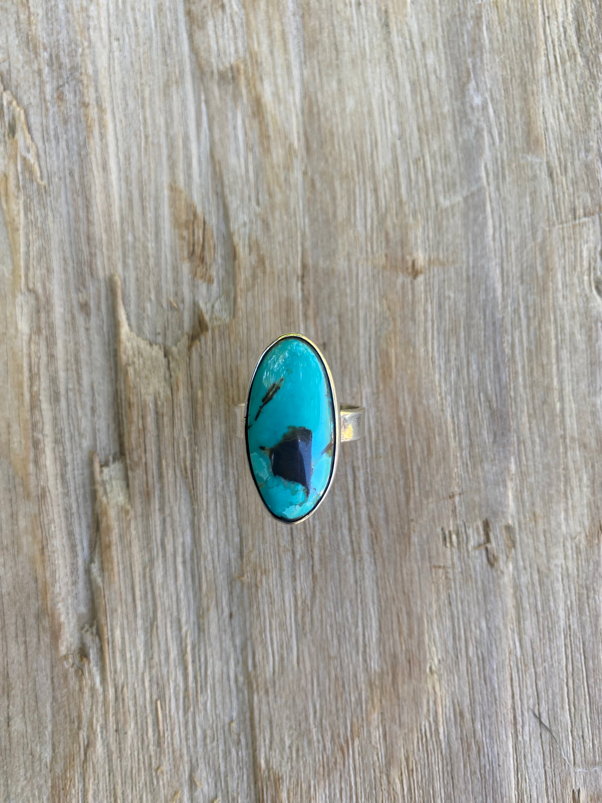 + Handmade sterling silver ring with oval Carico Lake turquoise